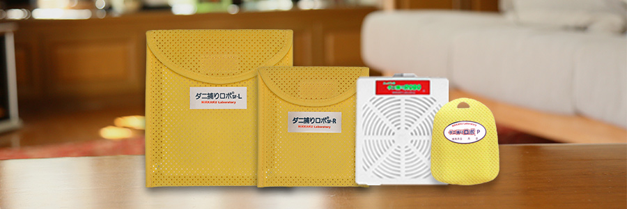 ダニ捕りロボ・ダニ捕りマットは日革研究所独自の技術で、生きたダニをしっかり誘き寄せて、乾燥させてしまう「ダニ捕獲方式」のダニ対策商品です。