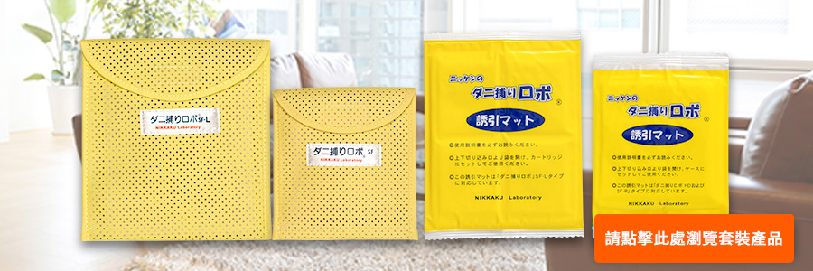 經過多年對塵蟎的研究,著眼於"塵蟎與幹燥"的關聯,在持續經過無數次的捕捉驗證之後,查明了塵蟎喜好的氣味,成功研發出了可以吸引塵蟎,並將其幹燥的產品。點擊進入日革研究所的網站
